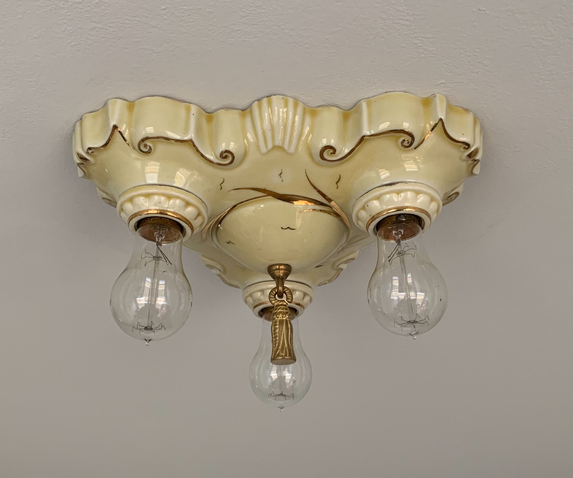 Vintage art deco 4 bulb porcelain ceiling light fixtures have not been rewired.